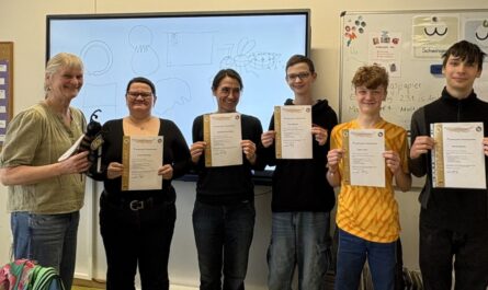 Unsere 4 großen Jungs (Jahrgang 8 und 9) haben bereits in den Sommerferien begonnen, über eine Onlineschulung den Imkerschein zu machen. Das Ziel ist es, in absehbarer Zukunft Zuhause eigene Bienenvölker zu haben. Dazu wird das Wissen, welches sie in der AG erwerben, weiter vertieft.