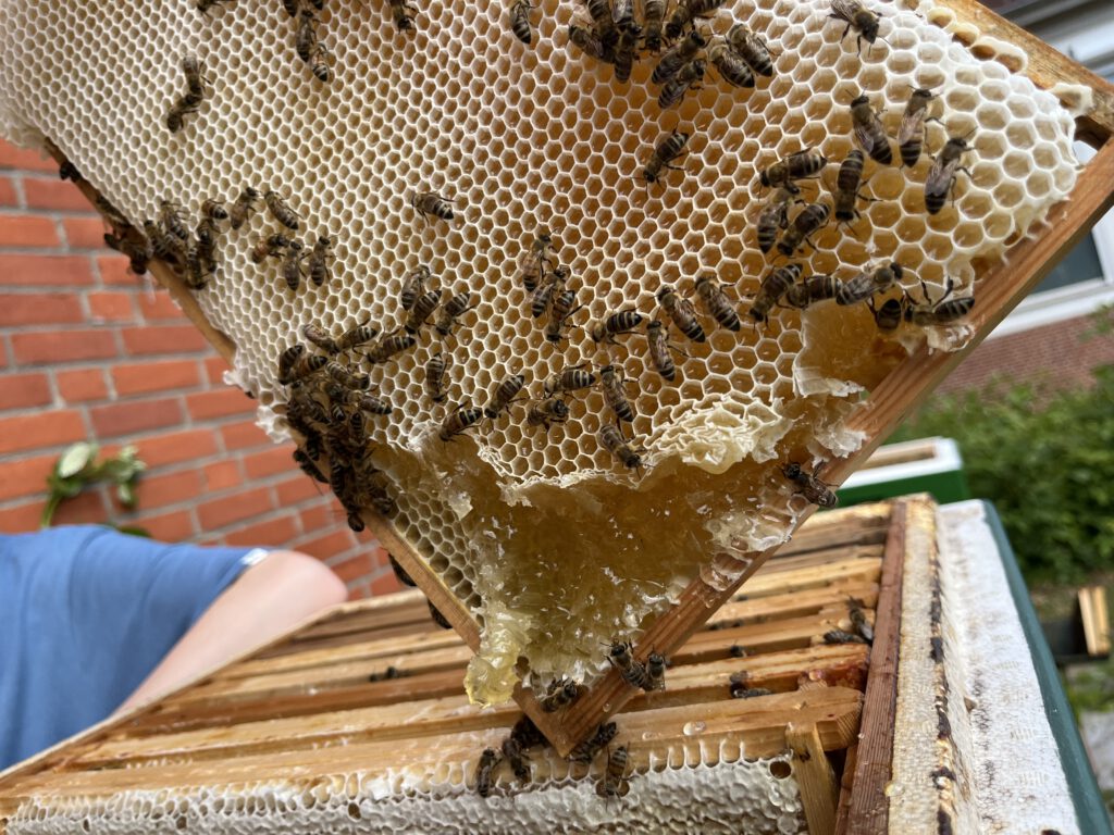 Im „Supervolk“ sind beide Honigräume schon voll, so dass wir mal ein wenig probieren konnten. Man sollte denken, Honig ist Honig, aber: selbst gemacht aus eigener Ernte schmeckt halt am besten.