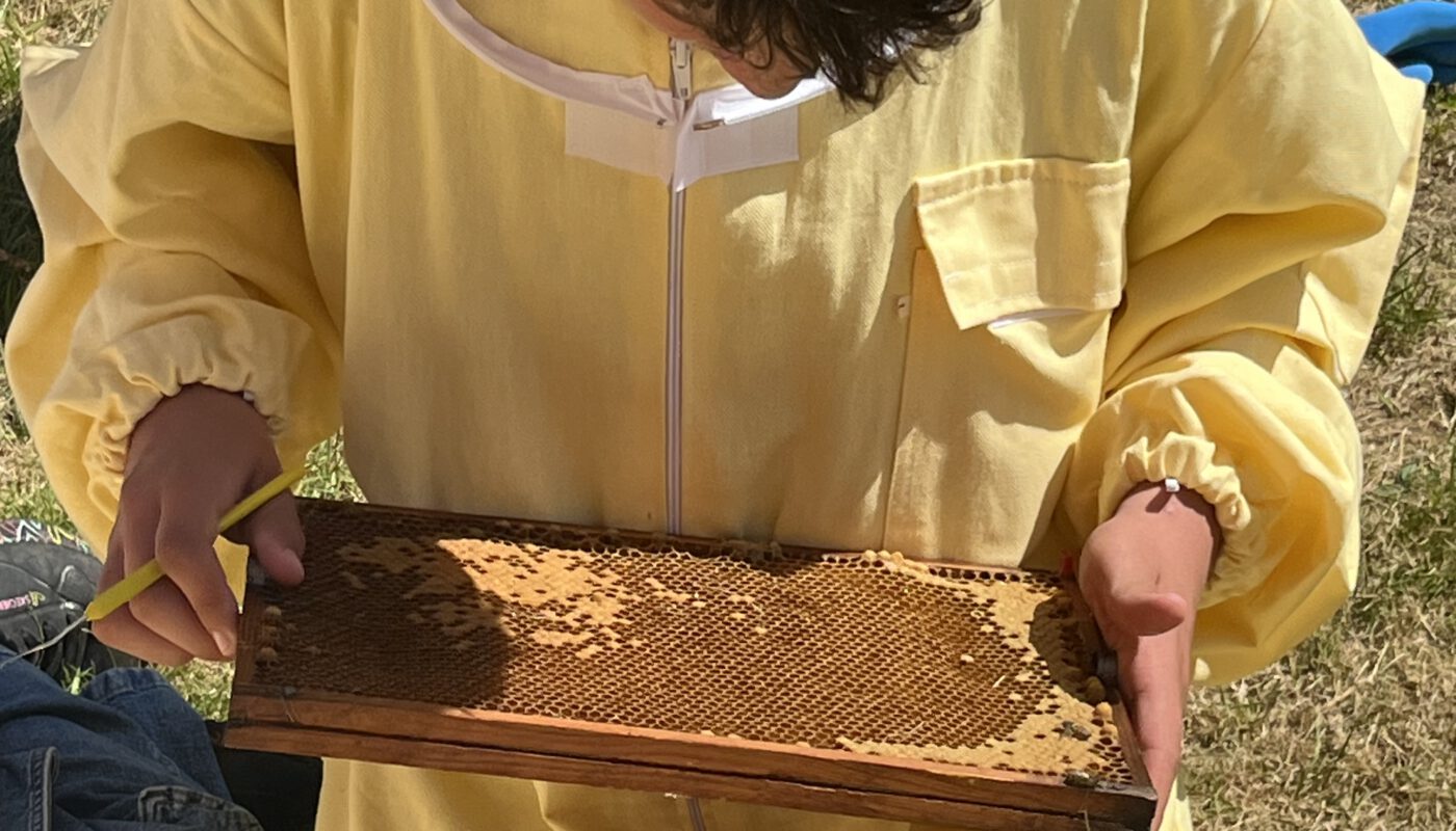 Ach ja, nach dem aktuellen Honigstand haben wir auch geguckt. Einige Honigwaben sind schon richtig voll und zum Erstaunen der Kinder ganz schön schwer geworden.